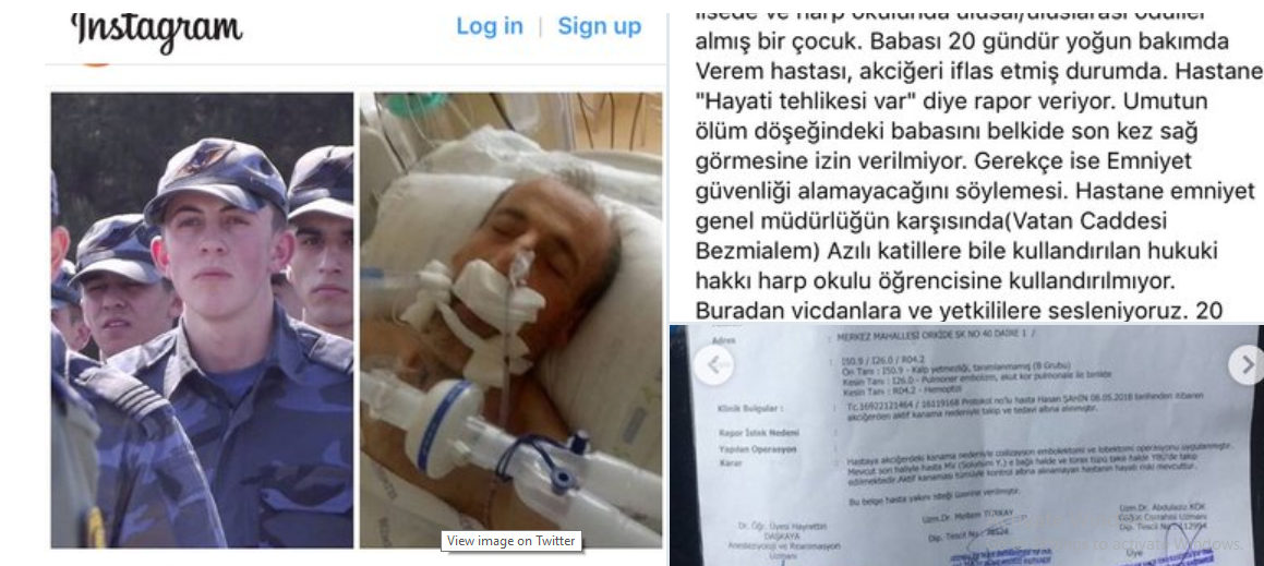 Işıklar Askeri Lisesi’ni birinci sırada bitiren ve Hava Harp Okulu öğrencilerinden olup geçtiğimiz günlerde müebbet hapis cezasına çarptırılan Umut Şahin, ölüm döşeğinde olan babasını görmek için yetkililere yardım çağrısında bulundu. Harbiyeli öğrencinin sesini davaları yakından takip eden gazeteci Ece Sevim Öztürk duyurdu.
